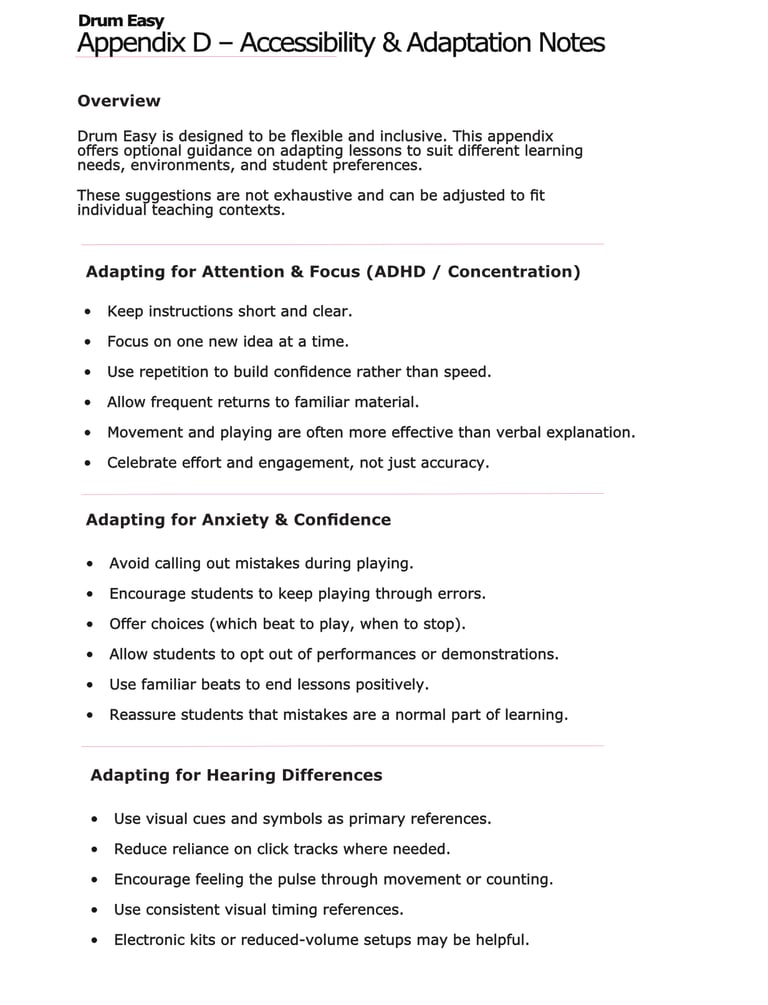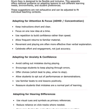Drum Easy is designed to help educators deliver effective drum lessons with confidence — without complex notation, overloaded theory, or unrealistic expectations.